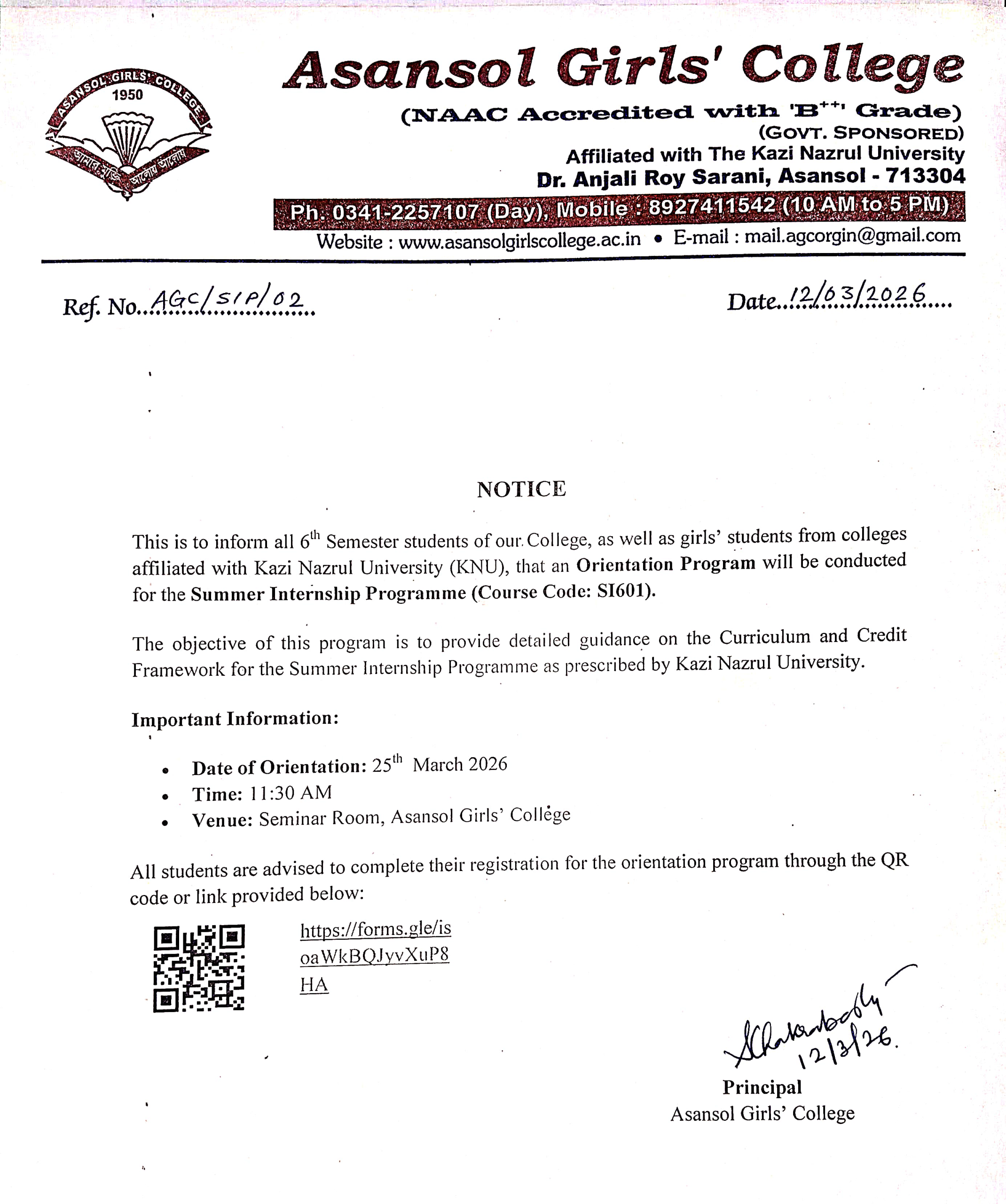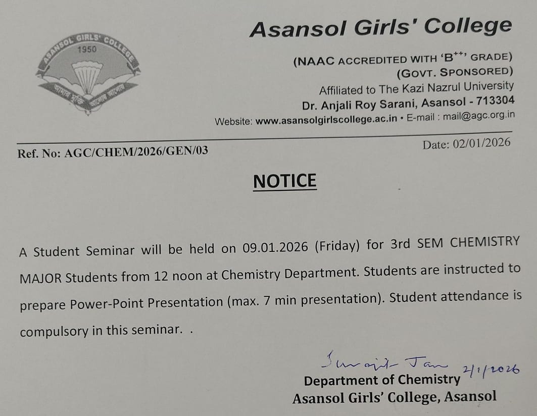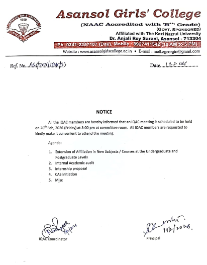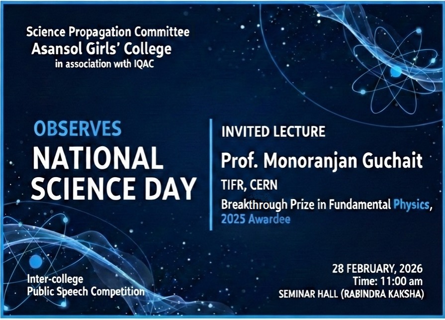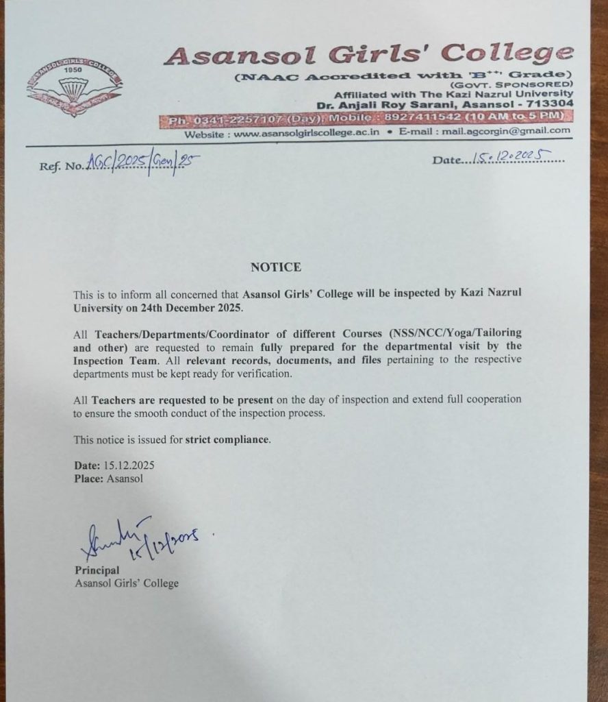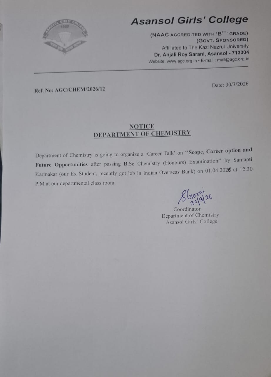 Asansol Girls’ College, affiliated to Kazi Nazrul University, stands as a beacon of women’s education in this region a sanctuary of learning, aspiration, and empowerment since 1950. Founded through the vision and dedication of Dr. Lalit Mohan Sen and Smt. Kamala Sen, and strengthened by the untiring efforts of Dr. Anjali Roy, the College has grown from its modest beginnings at Manimala Girls’ High School into a vibrant institution that shapes dreams and transforms lives.