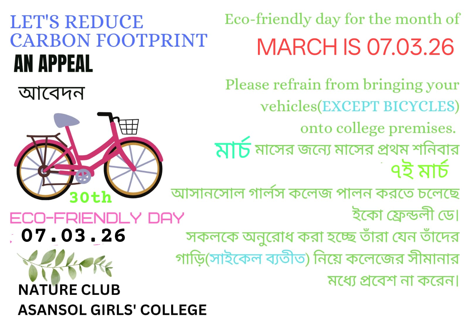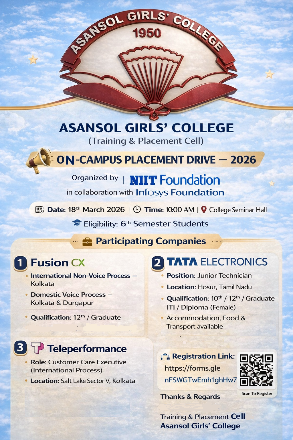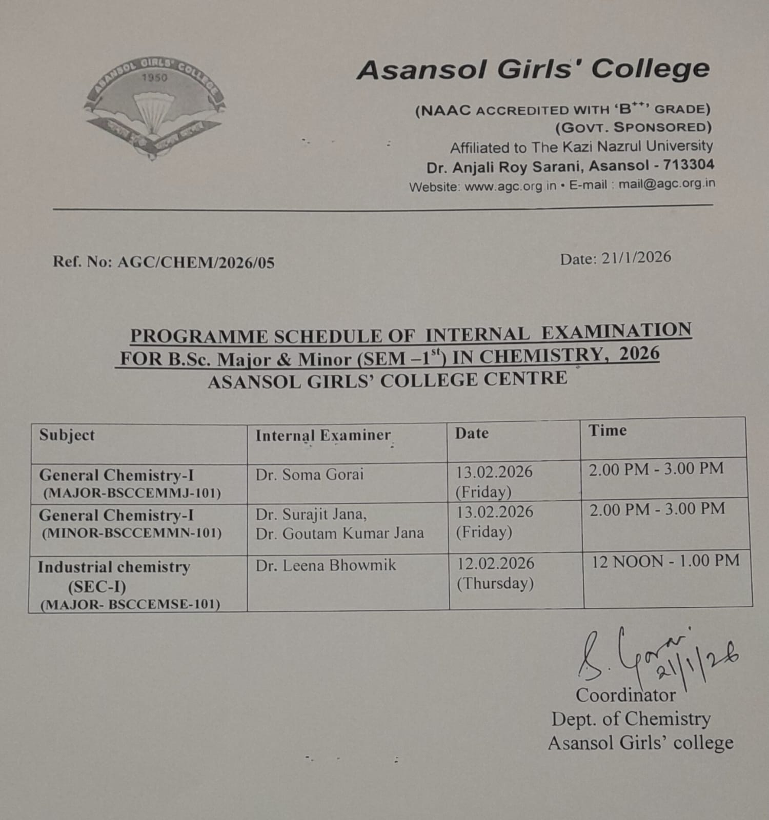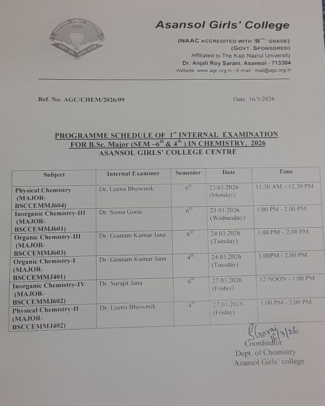 Asansol Girls’ College, affiliated to Kazi Nazrul University, stands as a beacon of women’s education in this region a sanctuary of learning, aspiration, and empowerment since 1950. Founded through the vision and dedication of Dr. Lalit Mohan Sen and Smt. Kamala Sen, and strengthened by the untiring efforts of Dr. Anjali Roy, the College has grown from its modest beginnings at Manimala Girls’ High School into a vibrant institution that shapes dreams and transforms lives.