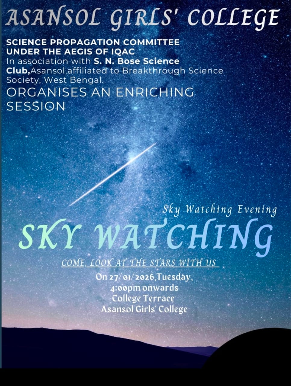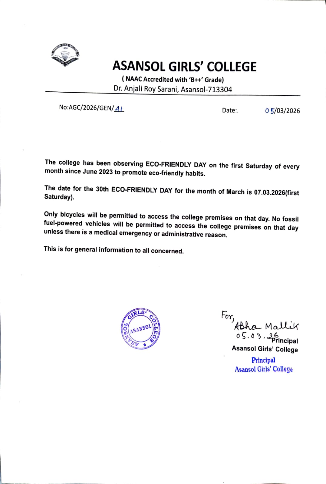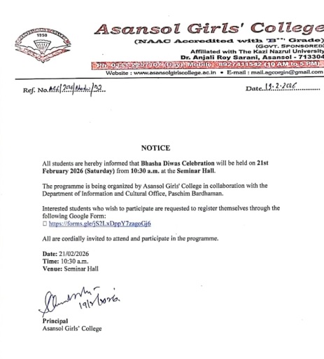 "Amar Mukti Aloy Aloy" Guided by the luminous beacon of our college motto, "Emancipation through Light," Asansol Girls' College embarks on a transformative journey of knowledge, liberation, and enlightenment. Our mission is to impart holistic education and capacity-building skills among girls from all sections of society, enabling them to become self-reliant individuals who possess rational, intellectual, and humane values. With a deep respect for the country's rich heritage of multiculturalism and diversity, our ultimate objective is to empower them to make significant contributions to the progression of society.