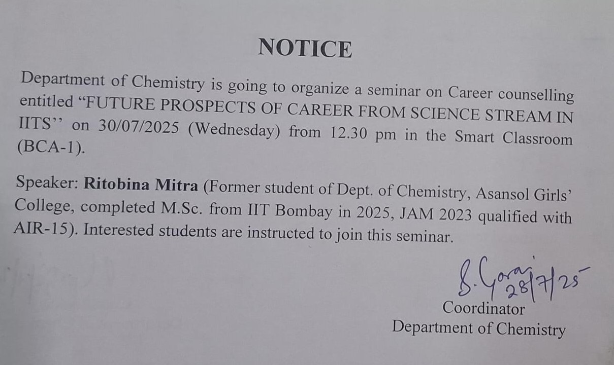 Chemistry-Career Counselling Seminar on 30/07/2025