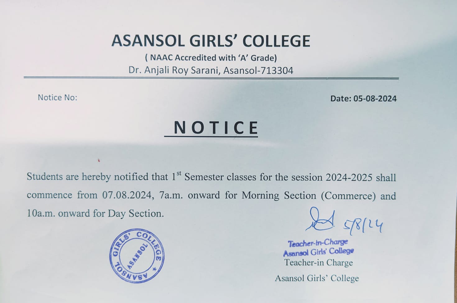 Notice for Orientation for newly admitted student (1st Sem-2024) |