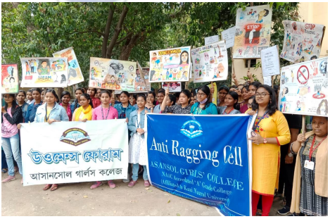 The Women’s Forum established in 2014-15 has worked relentlessly in addressing gender equity and empowerment by – conducting regular interactive/orientation programs and workshops with students of all departments, for example, Workshop on Sexual Harassment on 21.11.19 & 21.9.22; organizing poster and drawing competition on gender sensitization; organizing panel discussions like on ‘Bharater Swadhinata Sangram: Smaraniya Nari in 2022; ‘Women in Science’ etc., organizing Nukkad Natak on women’s empowerment on 8th March 2023, and PPT presentation on women achievers in sports; conducting awareness program in the campus against child marriage in the post Covid-19 period along with NGO ‘Prajaak’; undertaking regular counseling of those who suffer from emotional and mental problems; organizing collaborative health awareness and health checkup camp with Lions Asansol East; undertaking annual checking and assessment of overall security and safety measures in the college and hostel campus, etc.